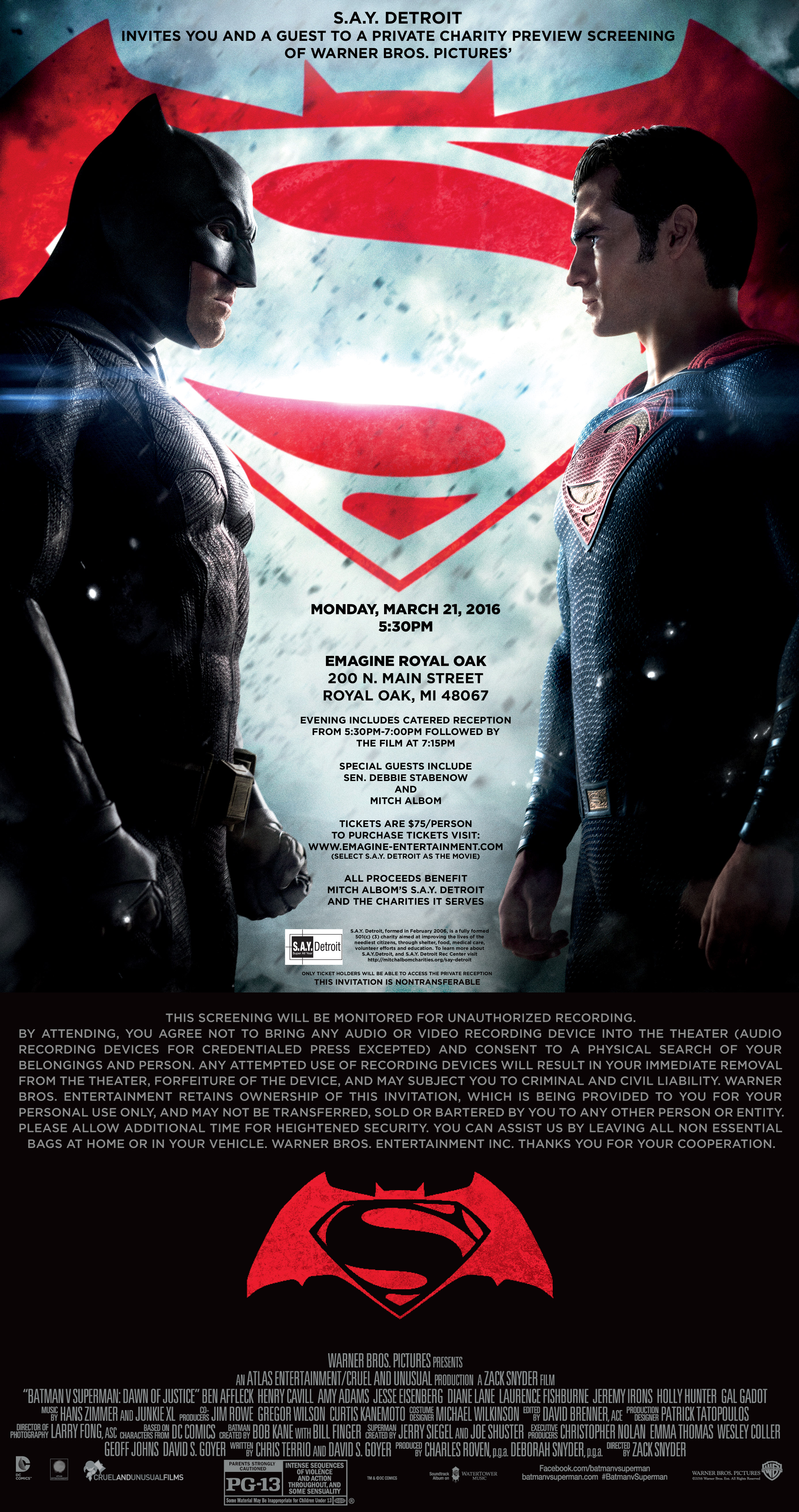 Home Calendar - Mitch Albom Private Screening of BvS